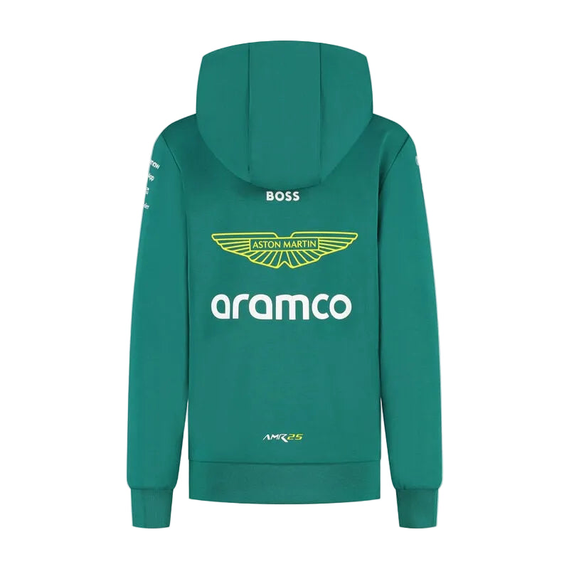 Kids version of the official Team Replica Hoodie, designed in a smaller size for the future generation of Aston Martin Formula One® Team fans. The soft brushed back fleece youth hoodie comes with all the official team and partner logos from the 2025 season.
