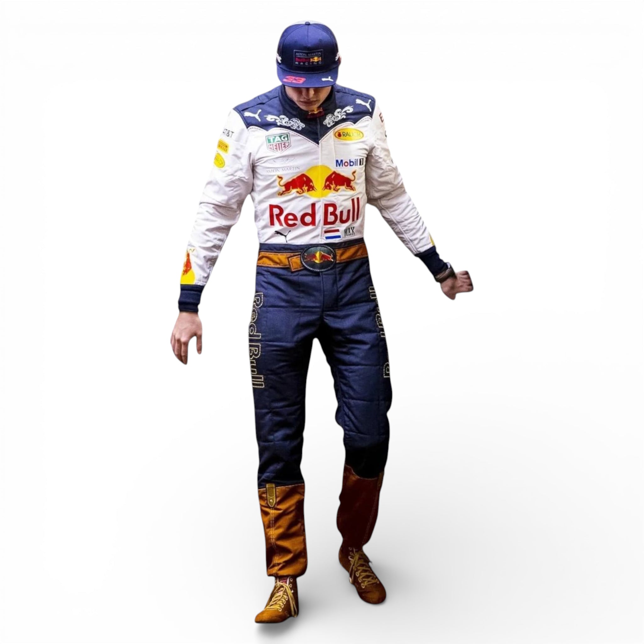 Celebrate one of Formula 1’s most iconic special designs with the 2018 Max Verstappen Red Bull Racing Cowboy Suit, inspired by the unique outfit worn during the United States Grand Prix weekend. Blending Red Bull Racing’s bold identity with Texas-inspired cowboy styling, this special-edition suit stands out as a fan favorite and a memorable moment from the 2018 F1 season.