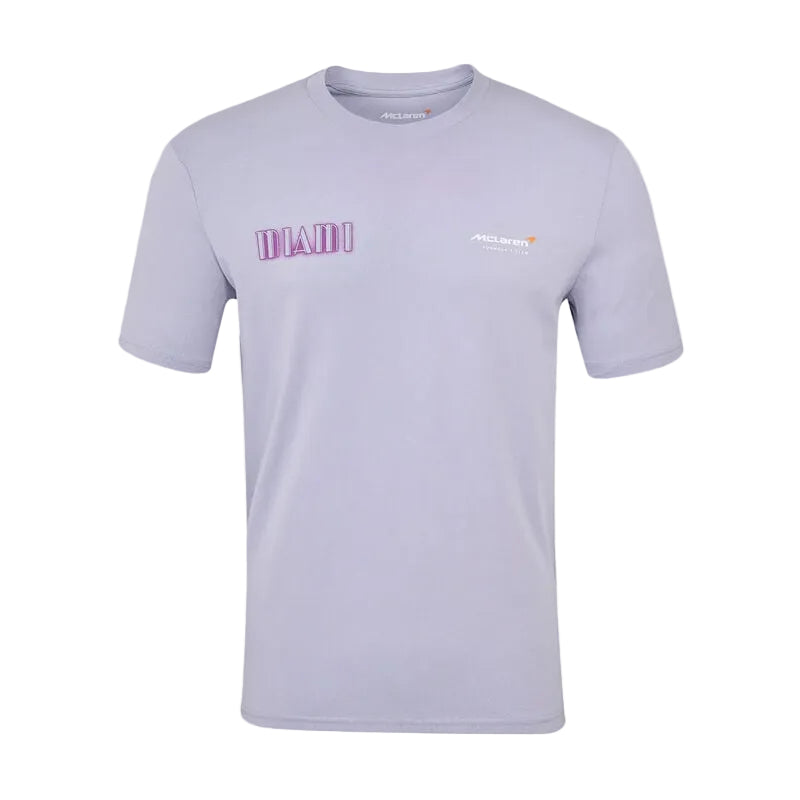 Part of a special Miami lifestyle collection for McLaren Formula 1 Team fans, the 100% Cotton T-shirt comes in an oversized fit with unique Miami inspired prints on the front and back.