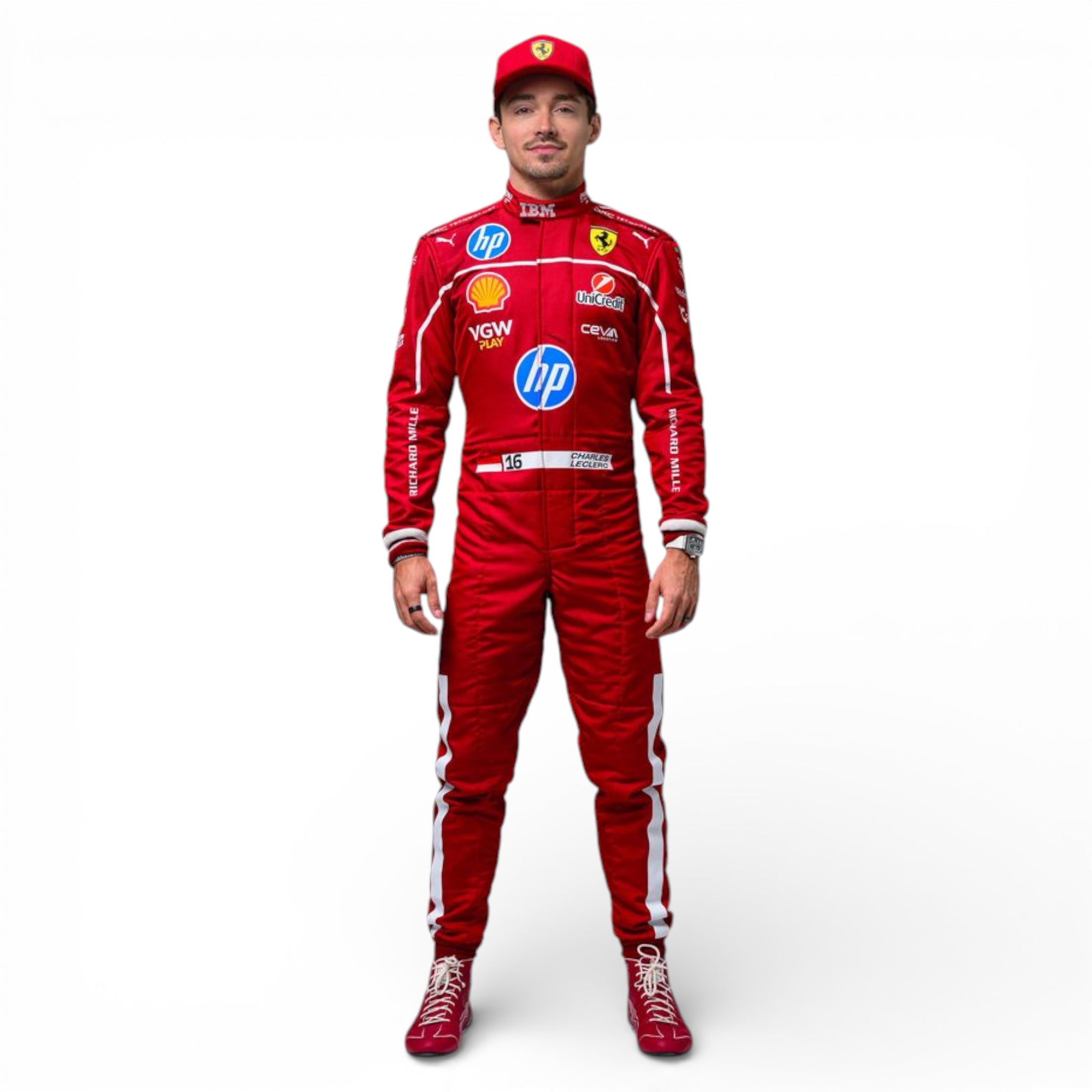 - Inspired by Charles Leclerc’s official 2025 Scuderia Ferrari Formula 1 race suit