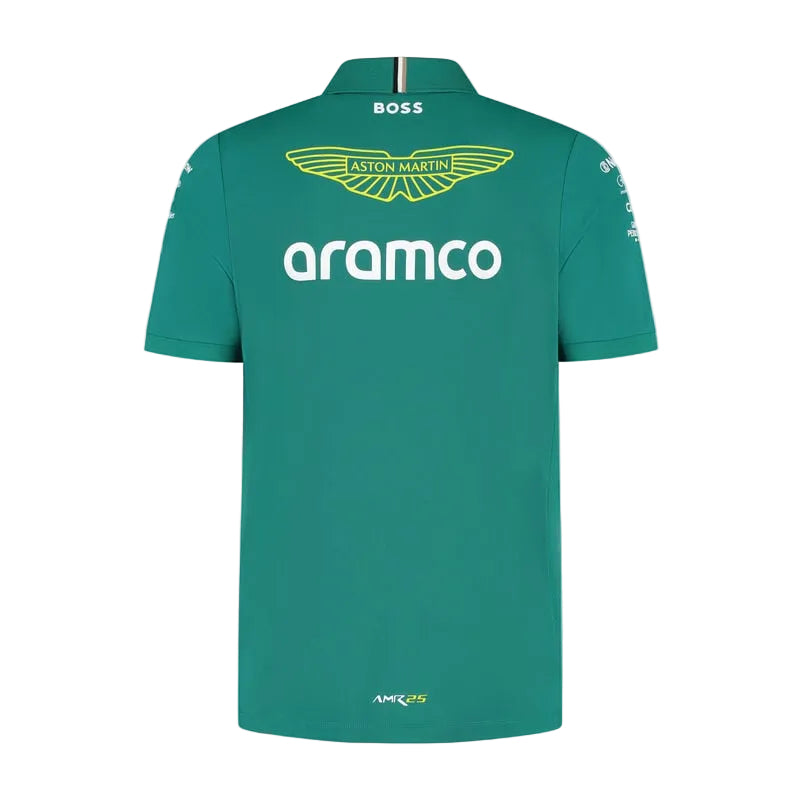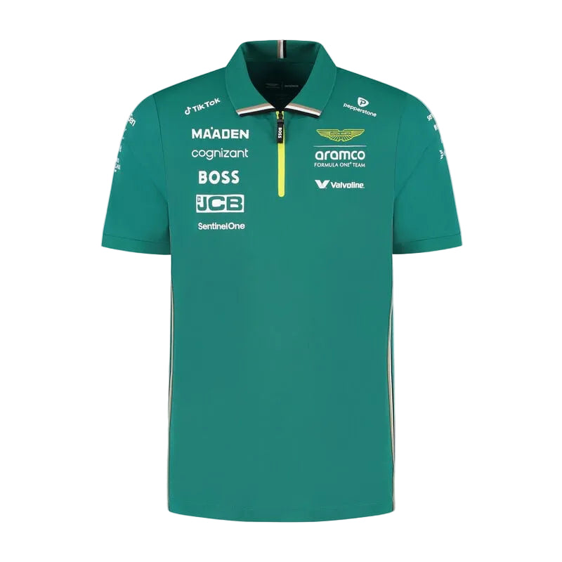 The official 2025 Team Replica Polo, as worn by the team and drivers throughout the 2025 Formula One® season. Clever details can be found throughout, including textured knit side panels, BOSS detailed zip polo collar, and precision printed Aston Martin Formula One® Team and partner logos.